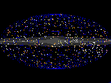 Cüce Yay GökadasıBu cüce gökada, bizimkine en yakın gökadadır. Bununla birlikte ancak 1994 yılında keşfedilmiştir. Gökadamızın uzak tarafında yer alır ve arada bulunan gaz, toz ve yıldızlar tarafından gözlerden saklanır. Yaklaşık olarak 78.000 ışıkyılı uzaklıkta ve 10.000 ışıkyılı çapındadır. Gökadamızın yörüngesinde yaklaşık 1 milyar yılda dönmektedir. Ancak o kadar uzun yaşayamayacaktır, birkaç milyon yıl içerisinde gökadamız tarafından parçalanacaktır. Yaklaşık 100 milyon yıldız içermektedir. Kabaca, M54 küresel kümesiyle aynı konumda yer almaktadır, ancak küresel kümenin cüce gökadanın bir parçası olup olmadığı henüz kesin belli değildir. Gökadasal YamyamlıkCüce Yay Gökadası, büyük bir ihtimalle Samanyolu tarafından yutulan ilk gökada olmayacaktır. Örneğin, Sloan Sayısal Gökyüzü Harita Çalışması (The Sloan Digital Sky Survey), gökadamızın dışında, Samanyolu tarafından 1 milyar yıldan daha önceki tarihlerde parçalanan daha küçük gökadaların kalıntıları gibi gözüken, büyük yıldız yığınlarını bildirmektedir. Bu yıldızların dağılımı, binlerce ışıkyılı genişliğinde ve gökadamız merkezinden 100 bin ışıkyılı uzaklıkta en az iki yığını göstermektedir. Gökada Düzlemi![]() Üstte - En parlak, en beyaz (B-V<0) 25.000 yıldızın tüm gökyüzü üzerinde işaretlendiği harita, bu yıldızların Samanyolu boyunca nasıl toplandığını göstermektedir. Bu harita, gökadamızın sınırlı, içeriden görüntüsünü göstermektedir. Haritanın ortasına yakın büyük, siyah yer, Kartal ve Yılancı takımyıldızları yakınındaki karanlık bulutsular nedeniyledir. Altta - İki Mikron Tüm Gökyüzü Harita Çalışması'nda (Two-Micron All Sky Survey), gökadamızın merkezi yönünde çekilmiş bir kızılaltı fotoğraf. Görünür ışıkta gökadayı görmemizi engelleyen büyük toz bulutları bu resimde görülebilmektedir. Cüce Yay Gökadası da ortadaki şişkinliğin solundan aşağıya doğru sarkar biçimde bu resimde belli belirsiz görülebilmektedir. ![]() |