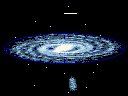 Samanyolu, çevresinde milyarlarca yıllık yavaş yörüngelerde yavaşça dönen birçok cüce gökada ile çevrelenmiştir. Bu harita, bahsedilen uydu gökadaların en yakındakilerini gösterir. |
