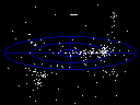 Güneş'e en yakın yıldız, güneş sistemimizin kenarına olan uzaklığın yalnızca 7000 katı uzaklıktadır. Bu harita, bizden 12,5 ışıkyılı uzaklığa kadar olan yıldız sistemlerini gösterir. |