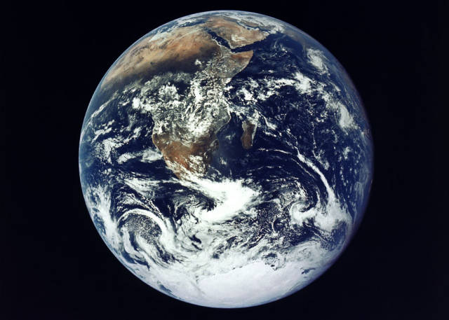 Apollo astronotlarının gördüğü gibi Ay`dan bakıldığında Dünya`nın