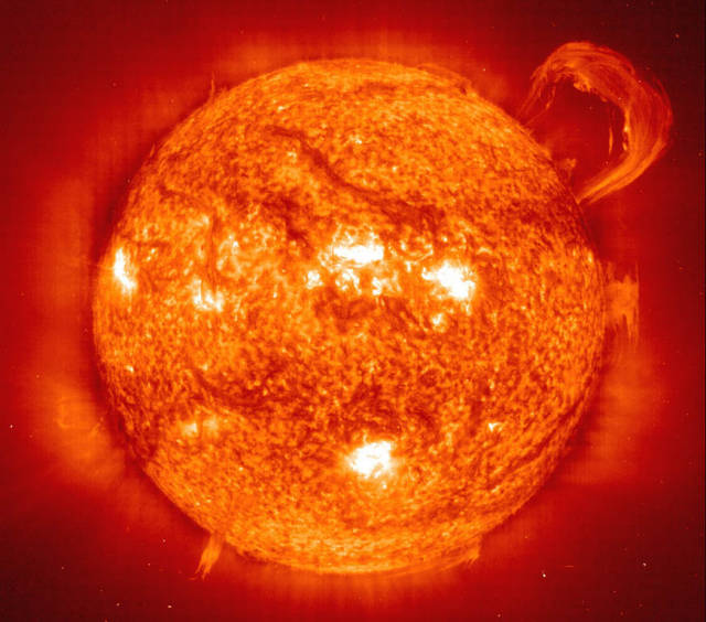 yayılmaktadır. Flare ve prominence adı verilen dev patlamalar Güneş'in