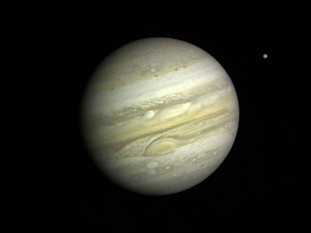 beraber Jüpiter'in yanında minicik kalırlar. Bu fotoğrafta görülen Ganymed