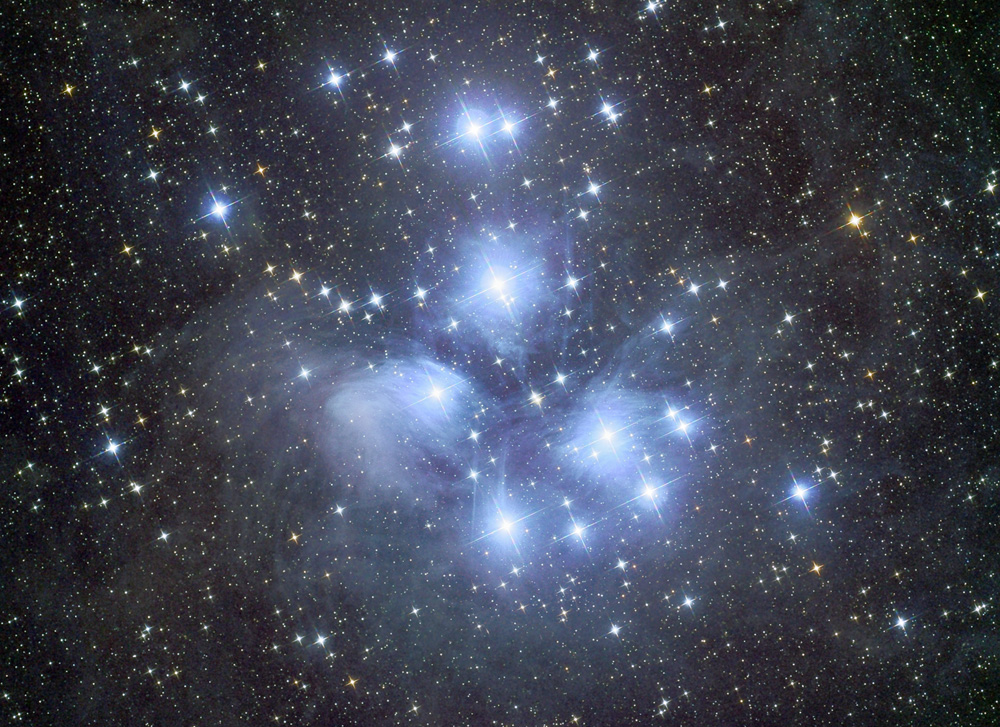 M45 - THE PLEIADES IN TAURUS - 1000 x 727 pixels Tak FSQ-106 and Tak NJP mount - SBIG STL-11000M camera - LRGB - 200 minutes total exposure time