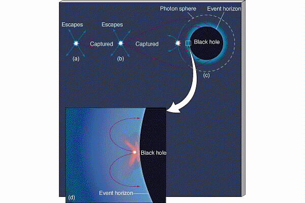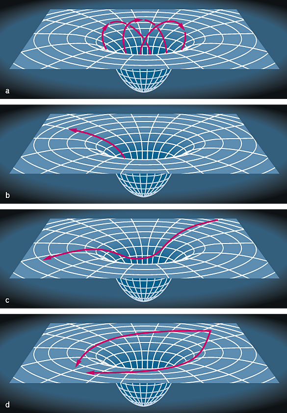 ” That's not all. The fact that space-time itself is accelerating - that is, the expansion of the universe is speeding up - also creates a horizon. Just as we could learn that an elephant lurked inside a black hole by decoding the Hawking radiation, perhaps we might learn what's beyond our cosmic horizon by decoding its emissions. How? According to Susskind, the cosmic microwave background that surrounds us might be even more important than we think. Cosmologists study this radiation because its variations tell us about the infant moments of time, but Susskind speculates that it could be a kind of Hawking radiation coming from our universe's edge. If that's the case, it might tell us something about the elephants on the other side of the universe. Einstein's Relativity. Some gravitational fields are so strong, that not even light itself can escape! These are called black holes. Einstein realized that one way to descrive gravity was to consider how it warped space. A black hole warps space so much that even photons are "sucked in".