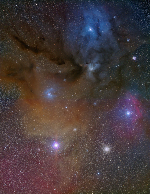 Ophiuchi at the upper right. Another area of blue nebulosity surrounds