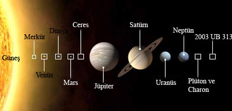 sistemdir. Güneş sisteminde yer alan gezegenlerin uzaklık ve büyüklük