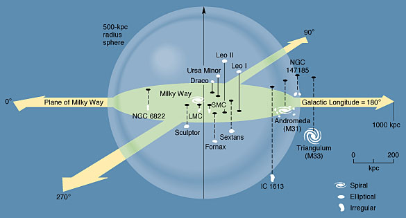 merkezi bölgesinden iki milyon ışık yılı içersinde bulunur. Astronomlar bu