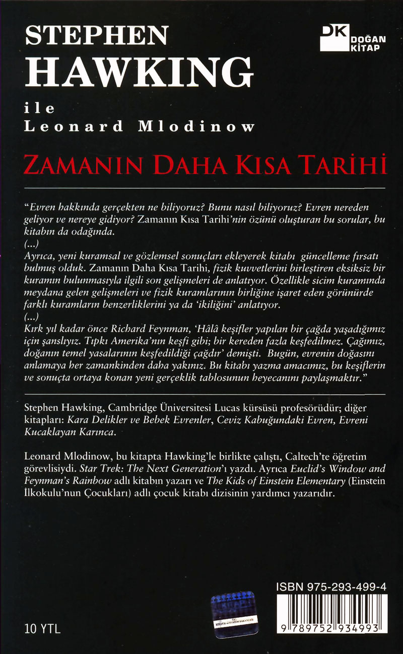 Zamanın Kısa Tarihi --------------------------------------------------------------------------------------------------- Dünyanın en ünlü fizikçilerinden biri olan `A Brief History of Time` (Zamanın Kısa Tarihi) adlı kitabın yazarı Stephen Hawking, yeni kitabında evrenin nasıl ve niçin yaratıldığını inceleyecek.