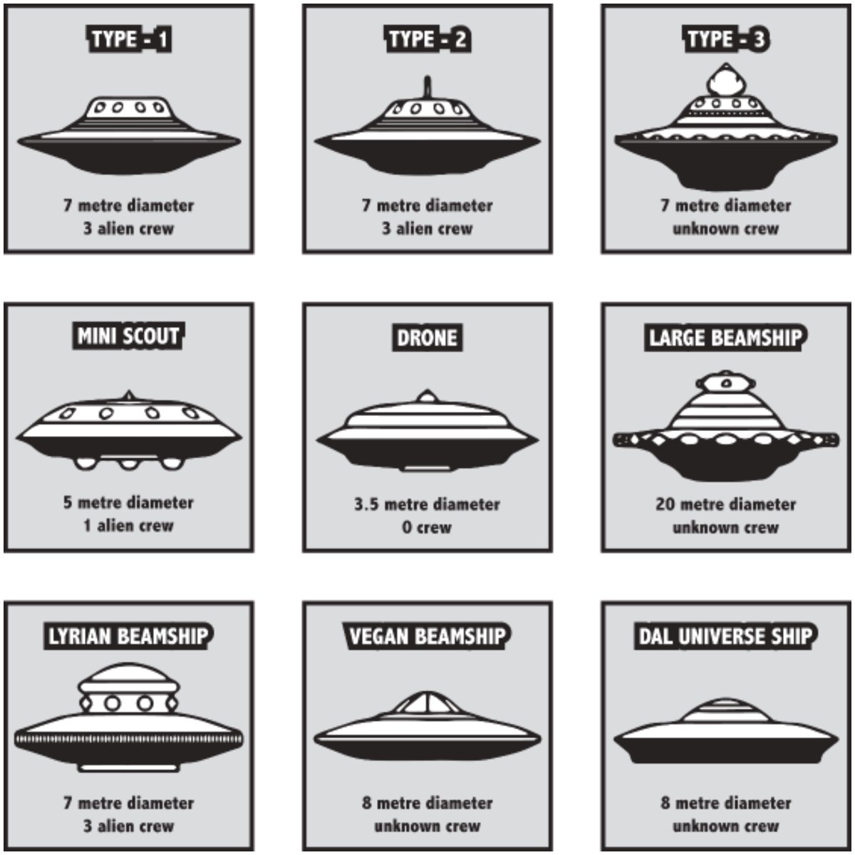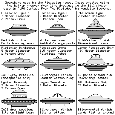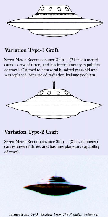 Below are six of the beam ship types belonging to the Pleiadians/Plejaren which has been in use on Earth. As of 1997 only type 2, 3 and 4 were in use.