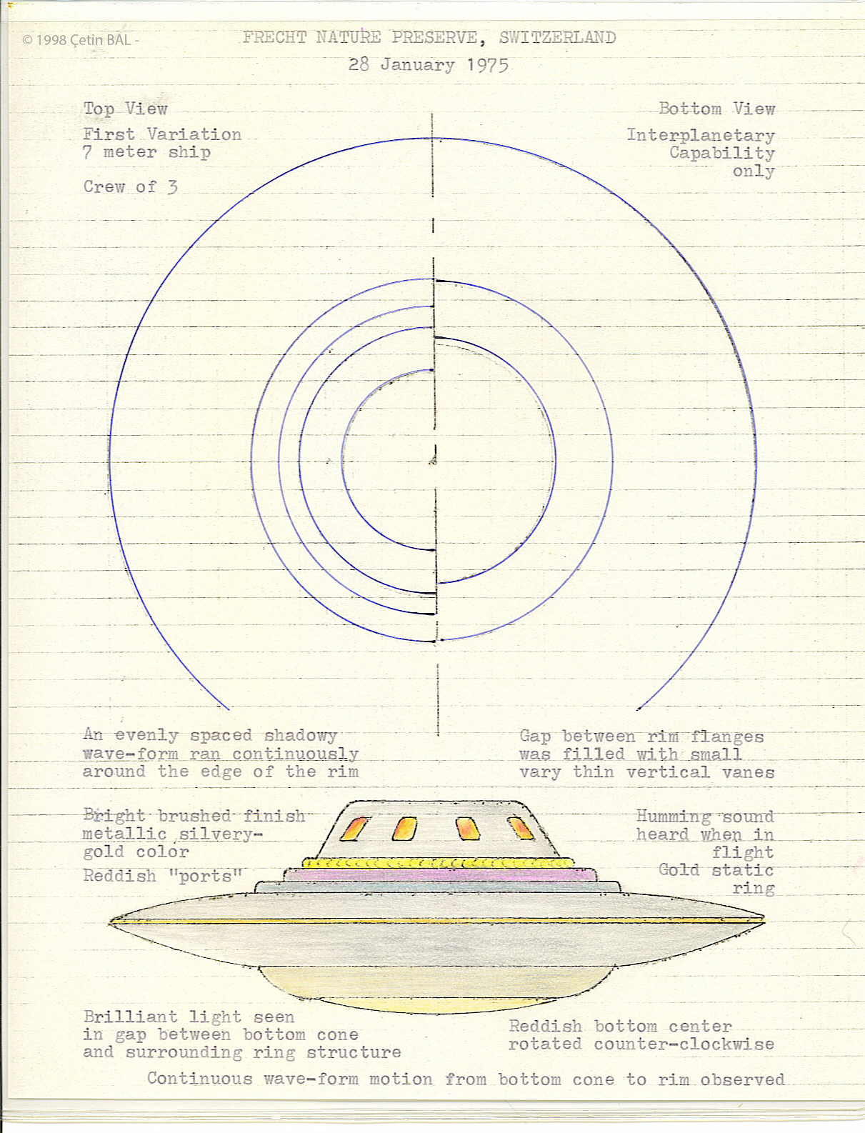 Semjase sent E.M. home ahead of time for the sake of his ill health which is why the contact lasted such a short time, something which did not suit E.M. at all writes Hans further. They therefore turned back. They rehashed their minds over coffee and talked through what they had experienced. By drawing a sketch Mr Meier described what the ship looked like, since Semjase had arrived in a ship of a new type.