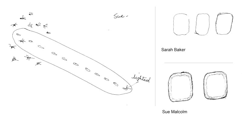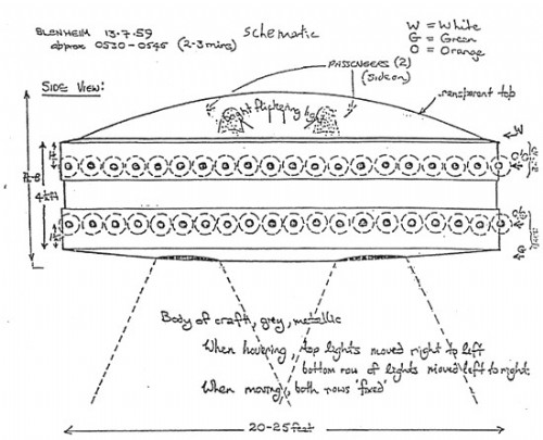 Sue Malcolm’s drawing of the cigar shaped object. Beside, a detailed
