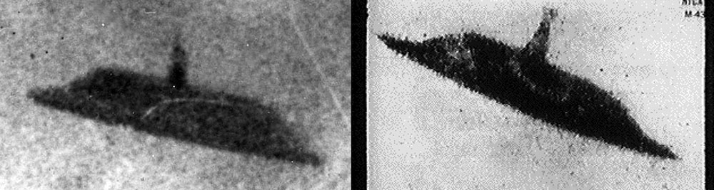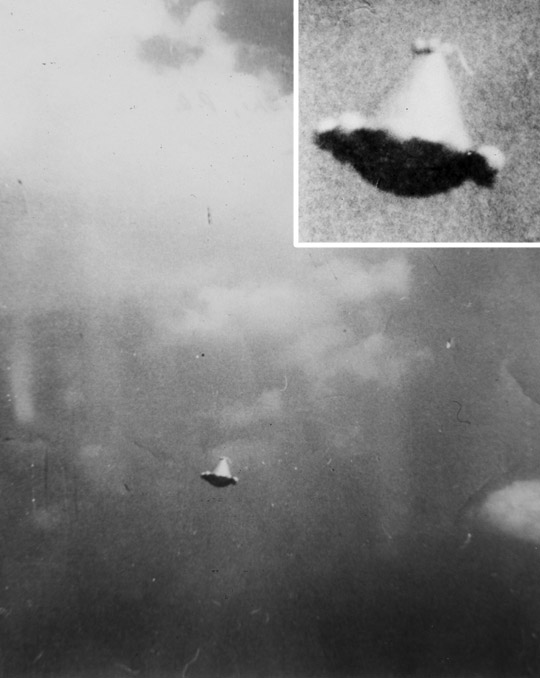 Left: Blowup of one of the Trent’s UFO photograph | Right: Detail of the