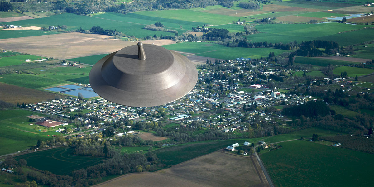 their eyes! Suspended in the sky was a giant cigar-shaped “something”. It