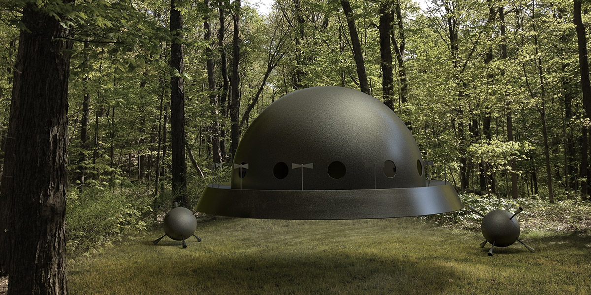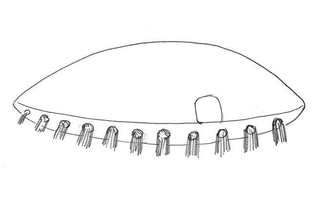 metallic, oval-shaped and topped with a dome. On its bottom were three