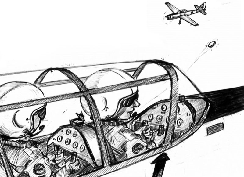 turned around, they saw a military jet in hot pursuit. Both of them stayed