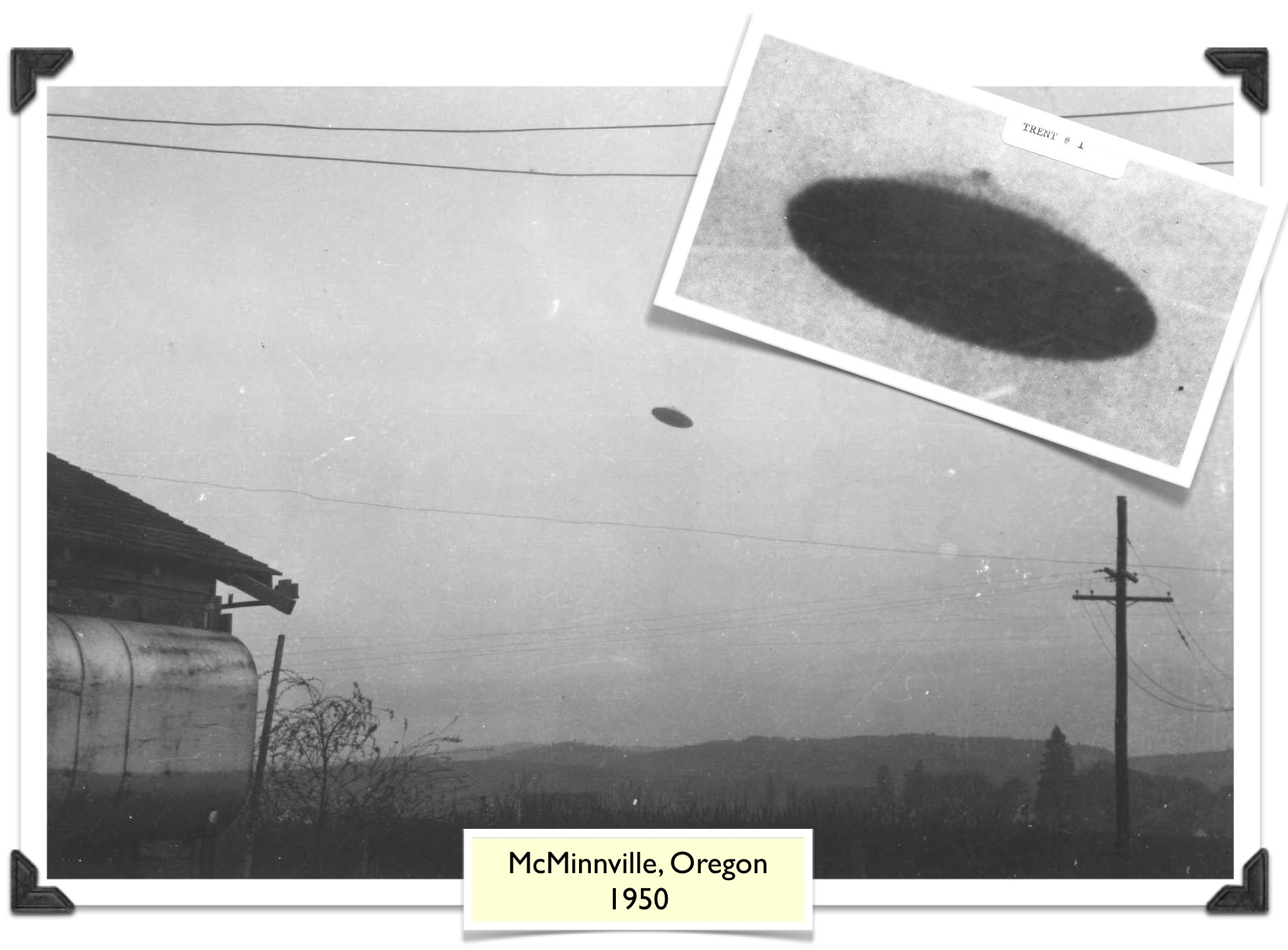 On May 11, 1950 in McMinnville, Oregon, Evelyn Trent saw a metallic disc-shaped