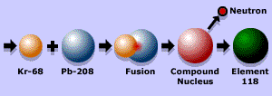 Wednesday, June 9, 1999 Published at 10:52 GMT 11:52 UK Sci/Tech New superheavy elements created BBC News Online Science Editor Dr David Whitehouse Two new "superheavy" elements have been made by bombarding lead atoms with energy-packed krypton atoms at the rate of two trillion per second. After 11 days, the scientists working at the Lawrence Berkeley National Laboratory, US, had produced just three atoms of element 118. These contained 118 protons and 175 neutrons each in their nucleii. The new elements decayed almost instantly to element 116, which itself was short-lived. But, for that brief moment, they were the only three atoms of these elements ever to have existed on Earth. Ken Gregorich, the nuclear chemist who led the discovery team, said: "Our unexpected success in producing these superheavy elements opens up a whole world of possibilities using similar reactions: new elements and isotopes." US Secretary of Energy, Bill Richardson, commented: "This stunning discovery opens the door to further insights into the structure of the atomic nucleus." Unstable combination Atoms consist of a central nucleus surrounded by a cloud of electrons. The nucleus consists of protons and neutrons. But not all combinations of neutrons and protons are stable. In nature, no element heavier than uranium, with 92 protons and 146 neutrons, can normally be found. Scientists can make heavier ones by colliding two large nuclei together and hoping that they will form a new, heavier nucleus for a short time. One of the most significant aspects of the new elements is that their decay sequence is consistent with theories that predict an "island of stability" for atoms containing approximately 114 protons and 184 neutrons. "We jumped over a sea of instability onto an island of stability that theories have been predicting since the 1970s," said nuclear physicist Victor Ninov. He is the first author of a paper on the discovery submitted to Physical Review Letters journal. Atomic structure Synthetic elements are often short-lived, but provide scientists with valuable insights into the structure of atomic nuclei. They also offer opportunities to study the chemical properties of the elements heavier than uranium. I-Yang Lee, scientific director of the atom smasher at Lawrence Berkeley National Laboratory, said "From the discovery of these two new superheavy elements, it is now clear that the island of stability can be reached. "Additionally, similar reactions can be used to produce other elements and isotopes, providing a rich new region for the study of nuclear properties." Fast work Element 118 takes less than a thousandth of a second to decay by emitting an alpha particle. This leaves behind an isotope of element 116 which contains 116 protons and 173 neutrons. This daughter is also radioactive, alpha-decaying to an isotope of element 114. The chain of successive alpha decays continues until at least element 106.
