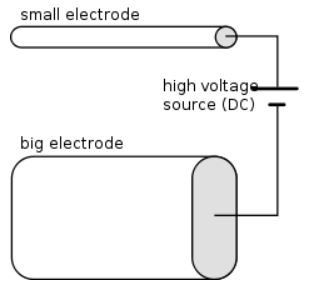 kilovolts and up to megavolt levels, where one electrode is small or sharp,