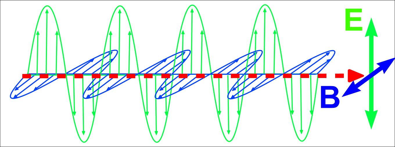 biri zamanla sinizoidal olarak değişir. E ve B ikisi birlikte aynı