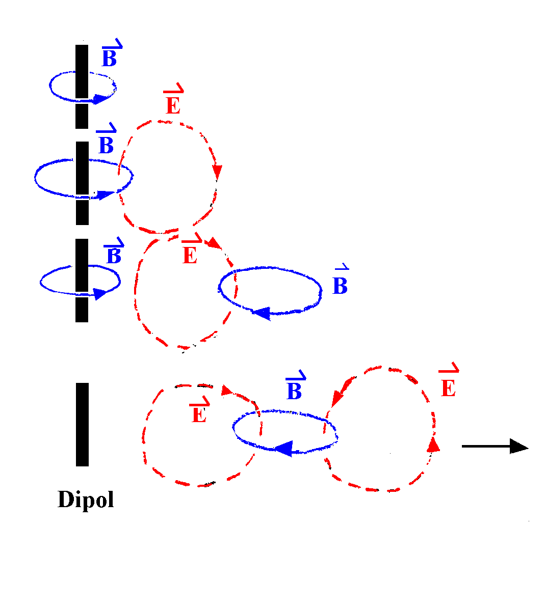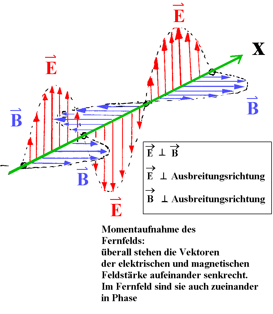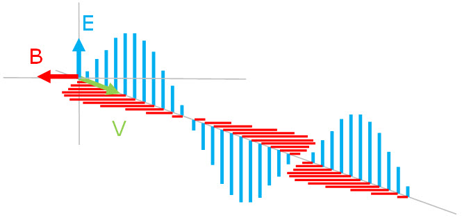 Elektrik alan vektörü E, manyetik alan vektörü B ye diktir ve her
