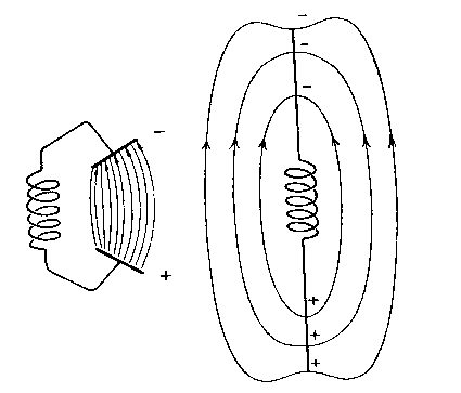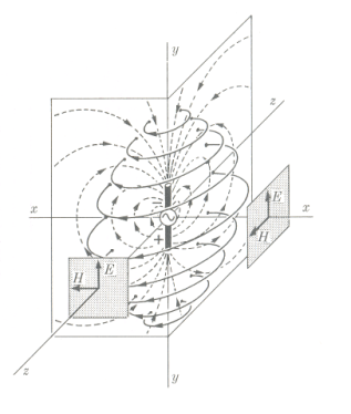 bu iletkenin bulunduğu ortama elektrik alan ve manyetik alan yayılmaktadır.