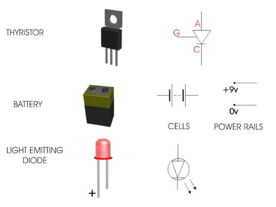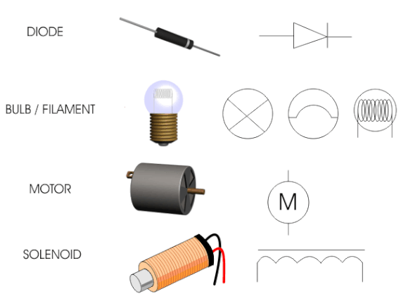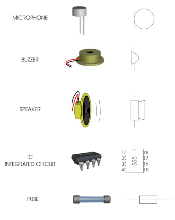 Elektrik devresi, direnç, kondansatör, iletim hatları, güç kaynağı ve