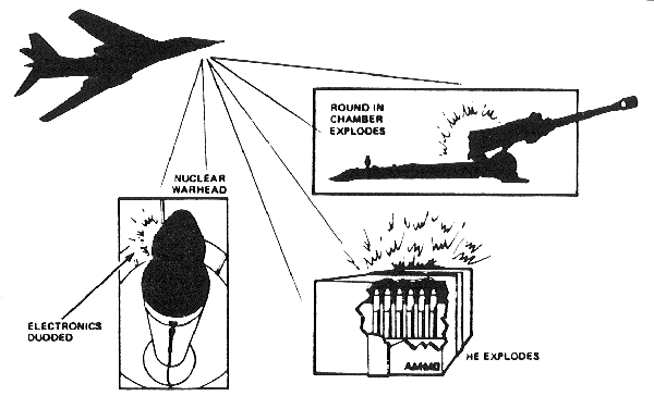 In the endothermic mode, the bias on the transmitters is such that energy is extracted from the distant intersection zone, to re-emerge at the transmitters. There the energy must be caught and disposed of if it is not to burn out the transmitters. When very large amounts of energy are extracted from distant points, the Soviets often use a "dump" method of temporarily capturing, and storing in an accumulator, the heat energy emerging at the transmitters. A second howitzer in the exothermic mode is then fed by a "scalar energy tap" established into the accumulator. This howitzer is focused on a distant dump site -- often Bennett Island, where exhausts are continually observed by U.S. weather satellites. In the impulsive endothermic mode, energy is impulsively extracted from the distant intersection zone. In the atmosphere this results in a very sharp cooling, or a "cold explosion." It also results in the type of boom and rumble often associated with thunder after a lightning bolt. On April 9, 1984 the Soviet Union tested such a "cold explosion" off the coast of Japan, near the Kuril Islands. In the suddenly induced low pressure "cold zone" above the ocean, ocean water was sharply sucked up from the ocean, forming a dense cloud. Then air rushing in to the low pressure zone forced the cloud upward, forming a mushroom much like that of an atomic explosion in visual appearance, except for the absence of a flash and the absence of a giant shock wave moving out away from the site of the explosion. (In this case the Soviets controlled the rise time of the pulse so that no "giant atmospheric boom" occurred.). As the cloud rises, it expands by mixing -- very similar to a giant thunderhead buildup, except much faster. In this case the cloud rose to 60,000 feet in about 2 minutes, spreading out until it reached a diameter of about 200 miles. The incident was seen by the pilots and crews of several Boeing 747 jet airliners in the general vicinity. Sometime after that, a U.S. weather satellite photo of the area occurred. The cloud in that photo has an anomalous density distribution, differing from that of all other clouds in the area.