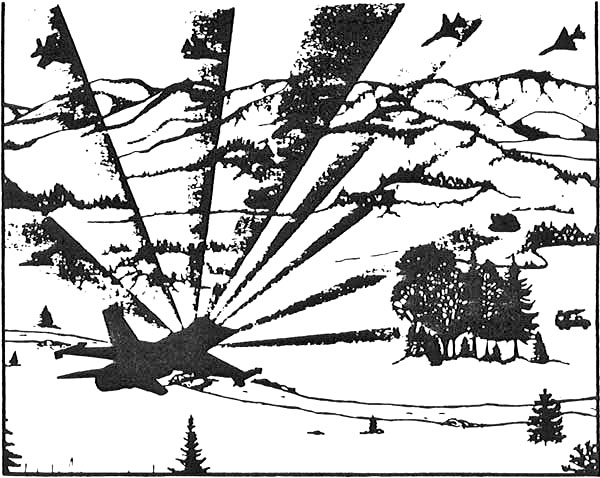 Aviation Week and Space Technology September 26, 1983 These exhausts from Bennett Island are euphemistically called plumes by U.S. weather analysts. Here is another U.S. weather satellite photo, showing the twin emergence of multiple puffs. One might expect such exhausts if the secondary "dumping transfer" howitzer is operated in the continuous mode, with continuous extraction by "power tapping" the accumulator of the primary howitzer. In that case, the operation of the primary howitzer would be exposed by the signature of the exhaust. For example, this exhaust would indicate multiple puffs, hence probably multiple frequencies and multiple primary transmitters, each phased in a controlled manner. That of course indicates the production of Fourier expansion forms -- of 3-dimensional geometrical forms -- by the primary howitzer(s). Since these are puffs, it may indicate the explosive formation of distant spherical balls of energy by the primary howitzer. This in turn indicates the use of a howitzer system in the "pulse firing" mode, which can be used against missiles, ships, aircraft, ground targets, armored vehicles, underwater targets, etc.