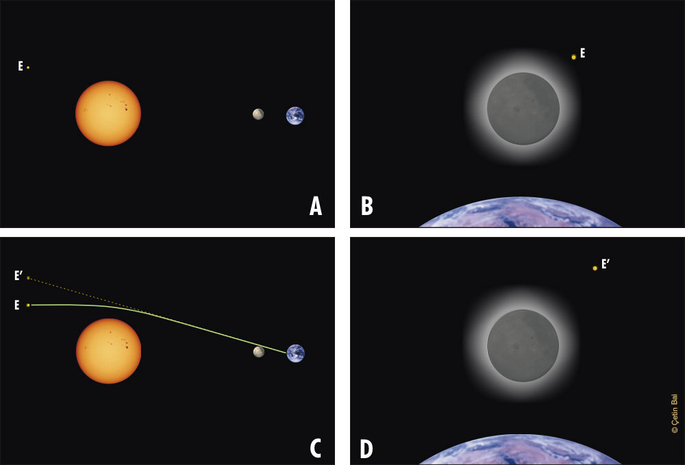observador desde la Tierra vería la imagen de la estrella E no donde
