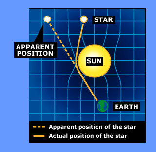 cerca de un cuerpo como el Sol tienen que desviarse cierto ángulo, lo cual