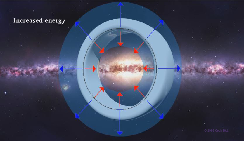 Figure 1. The expansion of spacetime by a warp drive traveling in the