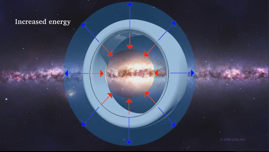 front and space-time expands in the back.