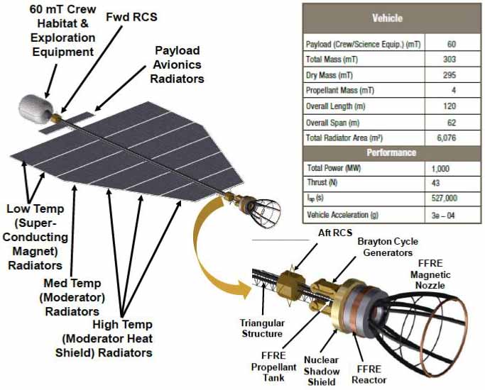 kullanabilen bu nükleer motor, diğer konsept tasarımlardan çok daha yavaştır.