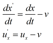 Burada belirtilen ux ifadesi, S referans sisteminde hızın x eksenindeki