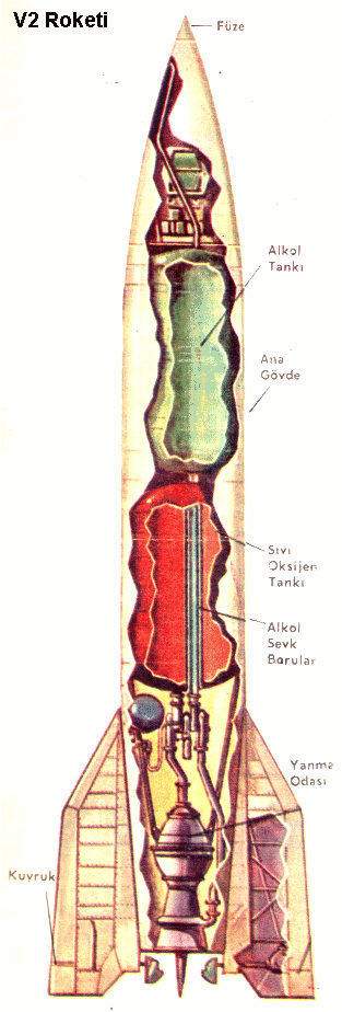 Şimdi, daha basit deney ile füzelerin temel çalışma sistemini görmeye çalışalım.Kapalı bir kutuya yüksek bir basınçla hava doldurduğumuzu düşünelim.Bu durumda kutunun her yanına düşen basınç eşit olduğu için kutu yerinden kıpırdayamaz.Kutunun herhangi bir tarafına delik açacak olursak, basınçla doldurduğumuz gaz buradan dışarı püskürmeye başlar.O zaman içerideki gazın kutunun duvarlarına yaptığı basınç aynı olmaktan çıkar.Gazın yalnız deldiğimiz noktaya hücum etmesi artık dengeyi bozmuştur.Bunun sonucu olarak kutuda meydana gelen tepki, kutuyu deldiğimiz yerin tam aksi yönüne doğru kıpırdatır. İşte, bütün füzelerin çalışması bu temel üzerinedir.Yakıt, füzelerin yanma odasında oksijen ile karışarak patlar.Yanma odasının her yanı kapalı, yalnız arka tarafı açıktır.Patlayan gaz, arka taraf açık olduğu için, buradan dışarı püskürür, patlamanın meydana getirdiği basınç öne doğru bir tepki yaratır.Bu tepki ise, füzenin ileri doğru hareketini sağlar. Füze ile Jet Motoru Arasındaki Fark Aslında Jet motoru da tepkili bir motordur.Bu motorlarda da hareketi sağlayan yanma odasındaki patlayan gazın meydana getirdiği tepkidir.Ancak, Jet motorları, yakıtın yanması için gerekli olan oksijeni dışarıdan, bir başka deyişle doğrudan doğruya havadan alırlar.Oysaki, füze yakıtlarının yanmasını sağlayacak olan oksijen ayrıca füzenin içinde depo edilir.Bu yüzden, bir füze atmosfer dışında da çalışabilir.Ancak, füzeler yanma için gerekli olan oksijeni beraberlerinde taşımak zorunda olduklarından hareket alanları çok sınırlıdır..Bütün bunların yanında, uzun süre havada kalabilmek için çok yakıt taşımaları zorunluluğu da füzelerin hareket alanlarını büsbütün daraltır. Füze motorları, bütün öteki motorların ağırlığına, meydana getirdikleri itme gücüne göre, daha zayıftırlar.Buna karşılık çok fazla yakıt kulanırlar. Füze Çeşitleri Füzeler katı ve sıvı yakıt ile çalışmalarına göre ikiye ayrılırlar: Katı yakıt ile çalışan füzelerin esası , havai fişeklerinkine çok benzer.Motorları yalnızca bir yanma odasından ve füzenin kuyruğunda yer alıp, yanma sonucu meydana gelen gazların dışarı çıkmasını sağlayan bir eksoz borusundan ibarettir.Katı yakıt olarak, ya kara barut ya da dumansız barut kullanılır.Bu tüp füzelerde yakıtın tamamı yanma odasında depo edilmiştir.Bu tip füzelerin kullanılması çok kolaydır.Ancak, katı yakıt ile çalışan füzeler çok uzak mesafelere gidemezler.Ayrıca, yakıt bir kez yanmaya başladıktan sonra yanmayı kontrol altına almak imkansız olduğundan, bu tip füzelerin hızı da ayarlanamaz. Sıvı yakıt ile çalışan füzeler ise, çok geniş hareket yeteneği olan füzelerdir.Bu tüp füze motorları dört bölümden meydana gelmişlerdir: Yanma odası, yakıtı yanma odasına gönderen ‘sevk boruları’, sıvı oksijen tankı ve yanan gazların dışarı çıkmasını sağlayan kuyruktaki egzoz borusu ( Yanan gazların çıkış memesi /çıkış hunisi )Bu tüp füzelerde, yakıt ve sıvı oksijen yerine bazan nitrik asit de kullanılır.Yanmayı sağlayan bu maddeler yakıtın cinsine göre değişir.Füze hareket edeceği zaman, her iki madde de yanma odasına gönderilir.Bazı cins yakıtlar birbirleri ile karıştırıldıkları anda yanmaya başlarla; bazılarının da özel bir düzen ile tutuşturulması gerekir.Çoğu defa bu tutuşturma barut yardımı ile yapılır.Yakıt bir kez tutuştuktan sonra, yeni gelenleri de yakar. FÜZENİN KADEMELERİ Görüldüğü gibi, sıvı yakıt ile çalışan füzeler iki çeşit yakıtı birden taşımak zorundadır.Çok uzaklara, özellikle atmosfere atılan füzelerin, hedeflerine ulaşması için, gereken yakıtı beraberlerinde götürmeleri hemen hemen imkansızdır.Bu yüzden büyük füzeler kademeli olarak yapılır.Genellikle üç kademeli olan füzelerin, ilk kademesi içindeki yakıt yandıktan sonra otomatik olarak füzeden ayrılır, düşer.Bu arada füze, ilk hızını almış, oldukça yükselmiş olur.İlk kademenin ayrılması füzenin yükünü iyice hafifletir.Hemen arkasından devreye giren ikinci kademe füzeyi daha büyük bir hızla ileri fırlatır.Füzenin bu kademesindeki yakıt daha azdır. İkinci kademenin yakıtı bitince, o da ana gövdeden ayrılıp düşer.O zamana kadar füze artık iyice yükselmiş, hemde hızlanmıştır.İkinci kademenin ayrılmasından sonra çalışmaya başlayan üçüncü kademe, füzeyi hedefine ulaştırır.Bu kademenin yakıtı diğerleri ile ölçülemeyecek kadar azdır. Çünkü, füze zaten yükselmiş ve gerekli hıza ulaşmıştır.Oysa ki, ilk anda füzeyi hareket ettirmek için çok fazla yakıta gerek duyulur.