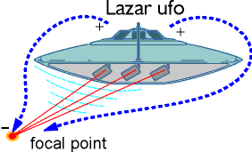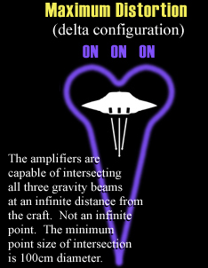 As the gravitational field from the amplifiers becomes more intense, the form of the space/time around the disc not only bends upward, but at maximum distortion, actually folds over into almost a heart shape around the top of the disc.