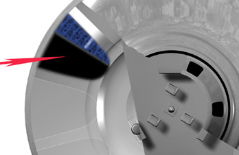 At a certain point when the disc was energized, a form of writing appeared on the right side of the archway directly in front of the seats. The remainder of the metalic archway face became transparent, exposing the exterior view from that angle.