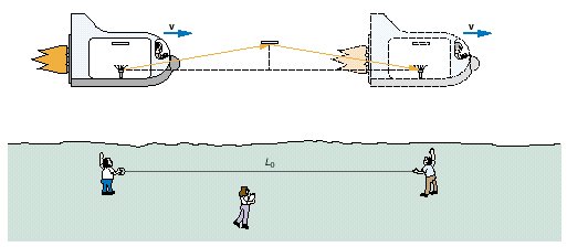 거리단축: 거리 L0를 v의 속도로 우주선이 스쳐 지나가고