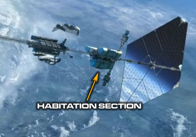 tarafı öne baktığı için modülleri gemiye çarpan kozmik radyasyondan koruyor.