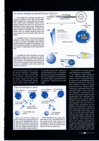 Uzay/Zaman Uzay/zaman, uzay ile zamanı "uzay-zaman kontinyumu" adı verilen yapıda birleştiren matematik modeli. Öklitçi yaklaşıma göre evren uzayın üç boyutu ve dördüncü boyutu oluşturan zamandan oluşur. Fizikçiler, uzay ve zaman kavramlarını tek bir çatı altında birleştirmek yoluyla, karmaşık fizik teorilerini önemli ölçüde basitleştirmeyi ve evrenin işleyişini süpergalaktik ve subatomik seviyelerde daha basit ve ortak bir dilde açıklamayı başarmışlardır. Geçmişe yolculuk yapmak belki de hepimizin ortak düşü... Bu düşü kuranlar yalnızca bilimkurgu meraklıları değil, birçok bilim insanı konuyu ciddiyetle ele alıyor ve bunun olabileceğini savunuyor. Focus Dergisi Zamanda Yolculuk: 1 - 2 - 3 - 4 -5 Kip Thorne ile Zamanda Yolculuk: 1 - 2 - 3 - 4 -5 Kaynakça 1. Einstein,Albert&Infeld,L.eopold; Fiziğin Evrimi,Onur Yay 2. Feynman,Richard; Fizik Yasaları Üzerine,TÜBİTAK yayınları 3. Gamow, George; Güneş Diye Bir Yıldız(1963),Çeviren:Gülen Aktaş,Say yayınları(1991) 4.Gürdilek,Raşit;Bilim Ve Teknik (TÜBİTAK,yazının tamamı yukarıda) 5.Hawking,S; Karadelikler ve Bebek Evrenler(1993),Çeviren: Nezihe Bahar,Sarmal Yayınevi(1994) 6.Hawking,S;Çeviz Kabuğundaki Evren(2001),Çev:Kemal Çömlekçi,Alfa yayınları(2002) 7.Heisenberg,Werner;Çağdaş Fizikte Doğa,Çevirenler: Vedat Günyol-Orhan Duru,Çan yayınları (1950) 8. Heisenberg,Werner; Parça ve Bütün(1969),Çev: Ayşe Atalay,Düzlem ya(1970) 9.Herbert,Nick;Temel Bilinç(1993) Çev: Meltem Andırıç, Ayna yayınları(1999) 10. İpekoğlu,Yusuf, Bilim ve Teknik,Ekim 2000 11. Landau,Lev &Y.Roumer,İzafiyet Teorisi Nedir?Çev:S.Gemici,Say yay(1996) 12. Omnes,Roland;Evren ve Dönüşümleri(1973), Çev: Sacit Tameroğlu-H.Vehbi Eralp,Onur Yay(1978) 13. Pagels, Heinz. R.;Kozmik Kod 1 ve 2(1981),Çev: Nezihe Bahar, Sarmal yay(1993) 14. Petrucci-Harwood, Genel Kimya,Tahsin Uyar Editörlüğündeki çeviri,Palme yayıncılık 15. Saçlıoğlu,Cihan;Bilim ve Teknik,325. sayı 16. Penrose, Roger; Uzay ve Zamanın Doğası 17. Penrose, Roger; Büyük,Küçük ve İnsan Zihni,Çeviren: Cenk Türkman,Sarmal Yayınları(1998) 18.Raymond, A, Serway;Fizik 1, Palme Yayıncılık (1995) 19.Tez, Zeki,Kimya Tarihi,V yayınları 20.Vasilyev,M.-Stanyukoviç, Madde ve İnsan,Çev: Ferit Pehlivan, Onur y(İkinci baskı,1989)